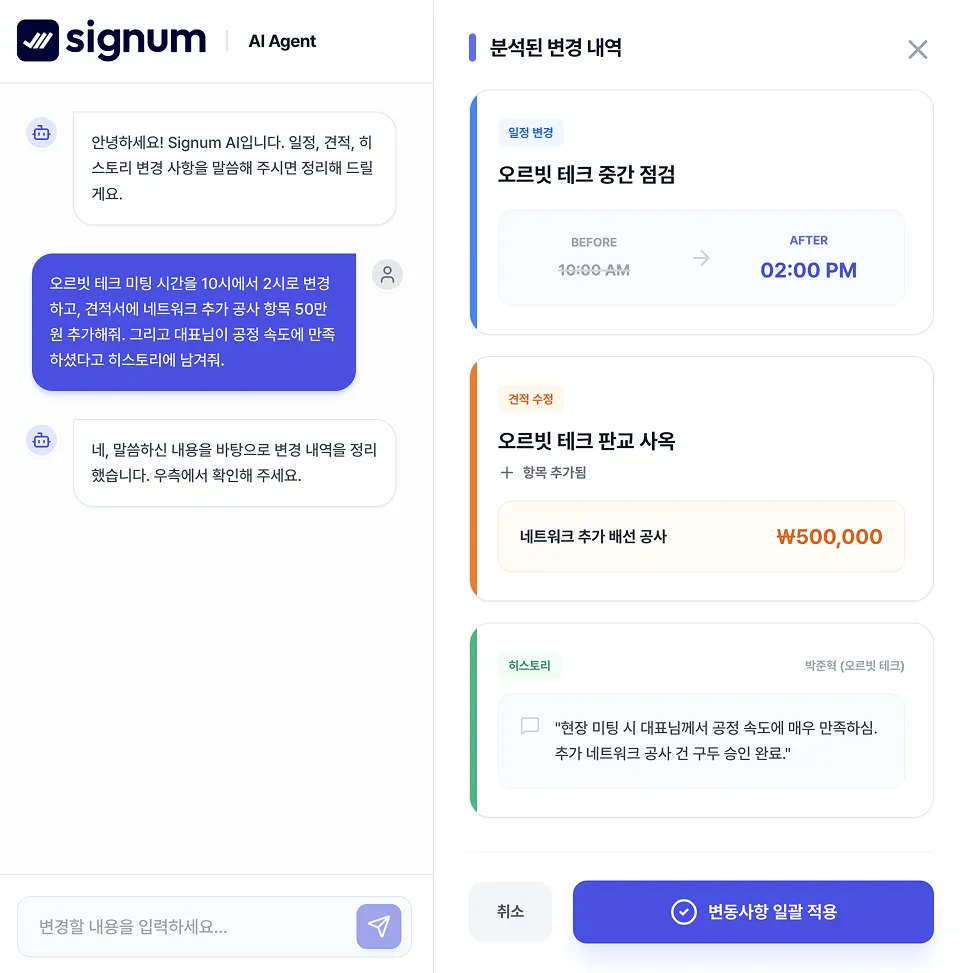 견적서를 업로드하면 AI가 프로젝트 전체를 자동 세팅합니다.