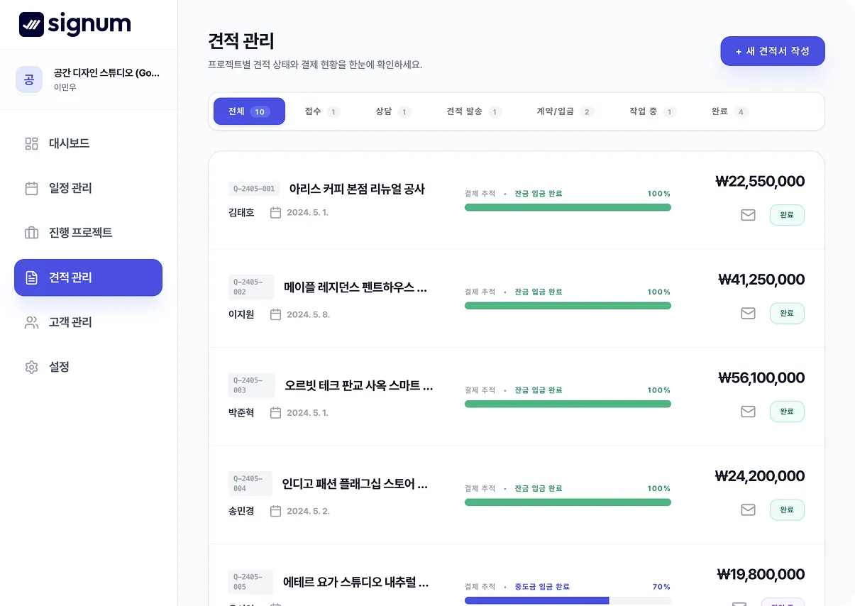 견적, 결제, 일정, 고객 공유를 한 곳에서